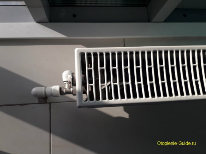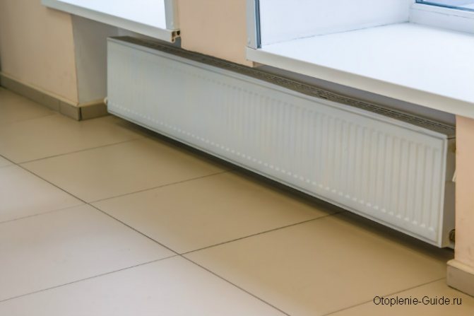 - Sie müssen 100 mm von der Höhe der Fensterbank nach unten gehen. Dies ist notwendig für den freien Wärmefluss vom Heizkörper nach oben;