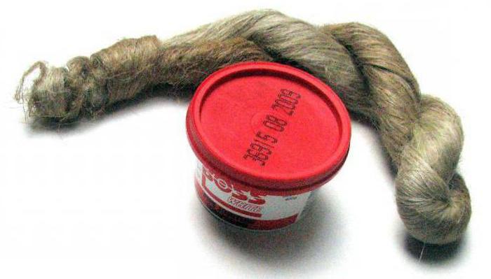 - Da Flachs eine organische Substanz ist, neigt er dazu, unter dem Einfluss von Feuchtigkeit und Luft zu verrotten, die beispielsweise bei vorbeugenden Untersuchungen in ihn eindringen. Zu diesem Zweck wird Schlepptau immer von zusätzlichem Material begleitet, das Fäulnisprozesse verhindert (Versiegelungspaste, Fett, Ölfarbe, Lithol und andere).