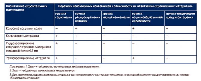 Die Klassifizierung gemäß GOST 30244-94 für Brandprüfverfahren wird verwendet, wenn alle Baumaterialien nach Entflammbarkeitsgruppen in Klassen eingeteilt werden: