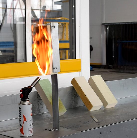 Materialproben werden in Laboratorien und auf offenen Flächen nach Standardmethoden getrennt für nicht brennbare und brennbare Baustoffe geprüft.