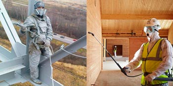 Flammhemmende Beschichtungen können durch Beschichten, Sprühen oder andere mechanische Mittel aufgebracht werden. Dies können Pasten oder Pflaster sein, deren Schicht normalerweise 5 bis 10 mm nicht überschreitet, bei Pflastern - 20 bis 45 mm. Der Hauptunterschied zwischen diesen Materialien von einfachen Zement-Sand-Kitten und trockenen Baumischungen ist das Fehlen von Portlandzement und Quarzsand in der Zusammensetzung. Dies ist auf die Tatsache zurückzuführen, dass sich diese beiden Materialien zu zersetzen beginnen, wenn sie Temperaturen über 500 ° C ausgesetzt werden. Beim Versuch, ein Feuer mit Wasser zu löschen, tritt eine umgekehrte chemische Reaktion auf - der gelöschte Kalk bricht durch die oberste Schicht, was zu Rissen und Schwellungen führt, die zum Eindringen von Flammen in die Strukturen beitragen.