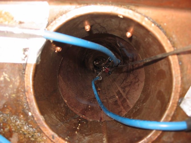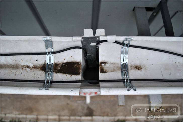Innerhalb des Fallrohrs und am Eingang dazu ist das Kabel mit speziellen Klemmen oder Kabelbindern verstärkt