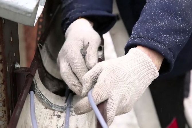- Ein Draht der erforderlichen Länge wird gemäß Messungen und Diagrammen vorbereitet. Installieren Sie das Kabel im Idealfall, bevor Sie die oberste Dachschicht installieren und fertig stellen.