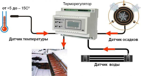 Geräte wie ein Thermostat und eine Wetterstation regeln den Betrieb des Heizungssystems. Der Thermostat schaltet das Heizsystem ein, wenn die Umgebungstemperatur eine voreingestellte Minustemperatur erreicht - normalerweise -8 ° C - und schaltet es bei +3 ° C aus. In den meisten Fällen können Sie die Frames nach oben oder unten anpassen.