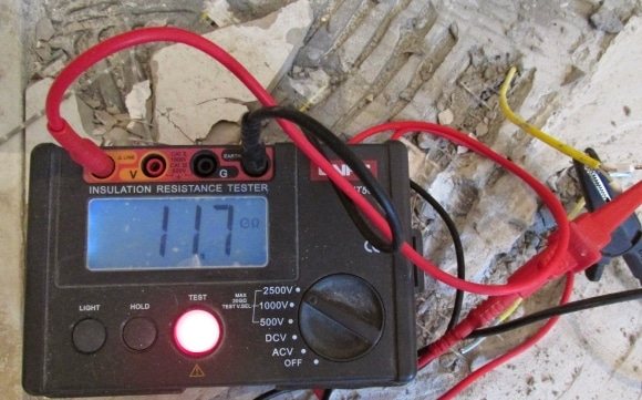 - In der letzten Phase wird die Betriebsbereitschaft des Heizkabels überprüft.Rufen Sie dazu auf und bestimmen Sie den Isolationswiderstand.