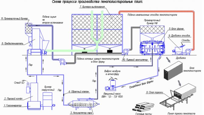 | 5 | Da jede Technologie zur Herstellung von Polystyrol abfallfrei ist, muss ihr Zuschnitt weiterverarbeitet werden. Hierzu wird ein Brecher verwendet. Es ist in Mode, recycelte Rohstoffe in einer Menge von 10% der Gesamtmenge an geschäumtem Material zuzusetzen. |