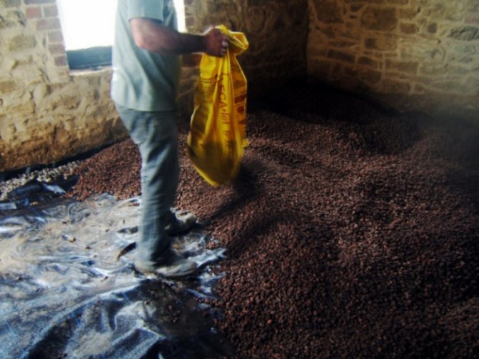 - Danach wird expandierter Ton gegossen. Es wird empfohlen, die Schichtdicke sofort zu bestimmen, da der Wärmeisolationseffekt von diesem Parameter abhängt.