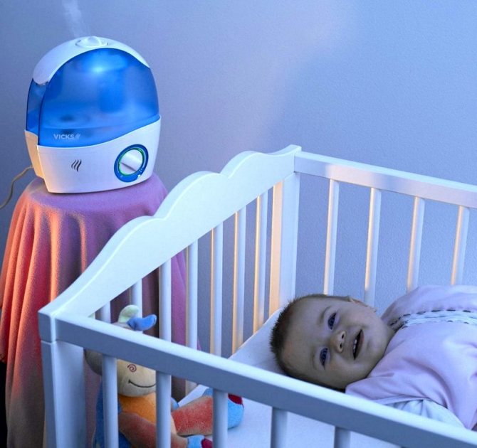 Übergetrocknete Luft im Kinderzimmer ist Feind Nummer 1. Die Luftmassen im Raum müssen befeuchtet werden, da Erkrankungen der Schleimhäute beim Baby auftreten können, ein Problem mit der Immunität auftritt. Ein häufiges Symptom ist das Schälen und Jucken der Haut. Der Feuchtigkeitsanteil im Mikroklima des Erholungsgebiets der Kinder sollte 50 - 60% nicht überschreiten. Wenn das Kind erkältet ist, muss der Feuchtigkeitsgehalt erhöht werden - daher ist es für Schleimhäute besser, mit dem Austrocknen fertig zu werden.