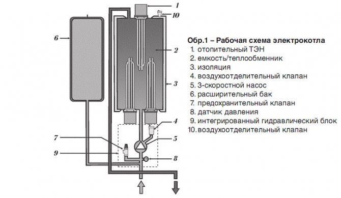 Circulation pumps, which are installed in electric heating boilers, are manufactured by well-known companies - Wilo or Grundfoss. Their feature is the work in a special mode, which prevents wear and tear of the device.