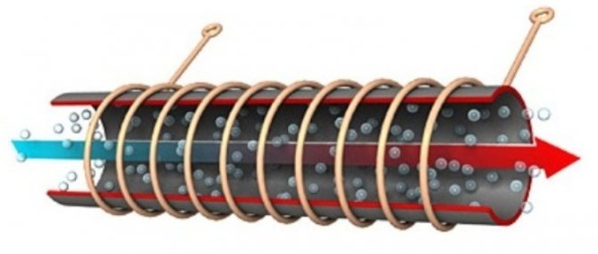 The principle of operation of induction units is extremely simple: passing through the coil, an electric current generates a strong electromagnetic field. In accordance with the Joule-Lenz law, under the influence of electromagnetic waves, the tubular core is intensely heated, giving off thermal energy to the coolant circulating inside it.