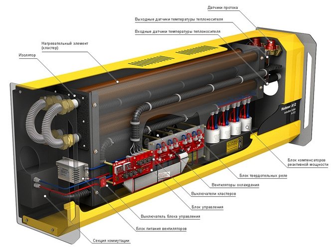 It should be noted that in an induction heating boiler, the replacement of units is practically not possible at all, because everything is in a sealed flask and it must be cut in order to pull something out of there.