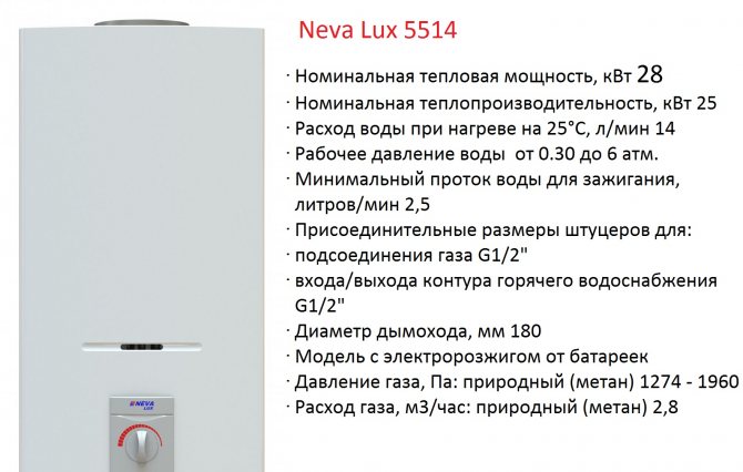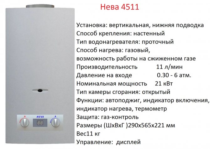 - Technical characteristics of the geyser Neva 4510