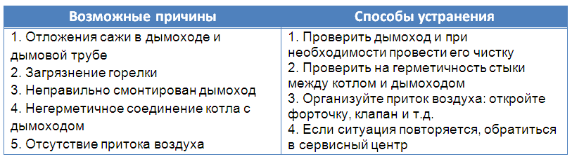 - There is no draft, the operation of the boiler is accompanied by the ingress of smoke and exhaust into the room.