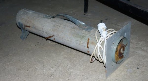 - Asbestos — a large diameter zinc tube for the fan to enter. Some people prefer to make a case of galvanized metal with a thickness of at least 1 m, and the whole home-made device is more mobile.