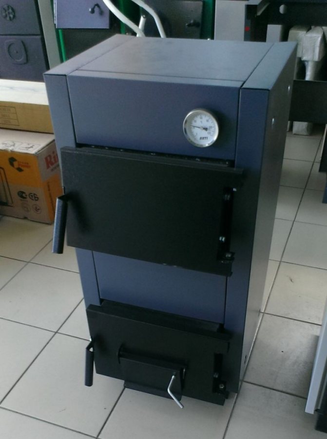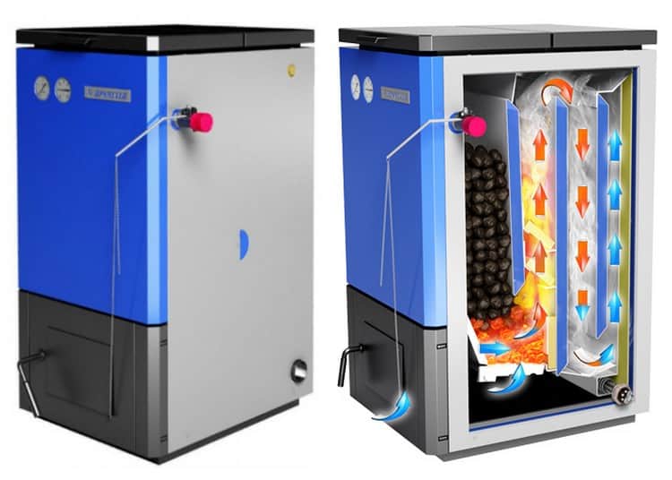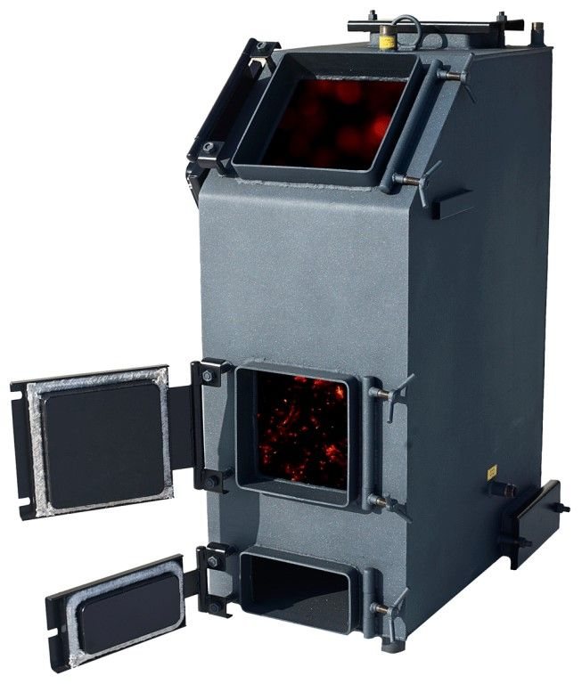 As mentioned earlier, the internal device, which has a long-burning coal-fired boiler, ensures uninterrupted operation from one fuel load to several days. Let's review the best long-burning boilers operating on solid fuels, in particular, on coal with a steel and cast iron heat exchanger.