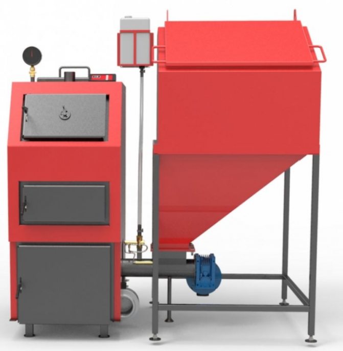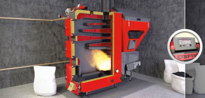 Such a coal-fired boiler is fully automated, starting from the electric ignition operation and ending with the control of the combustion intensity. The duration of the unit's operation is not limited by the fuel supply, which can be replenished by pouring it into the bunker on the go. Only the frequency of maintenance and cleaning requires stopping the boiler once a week.