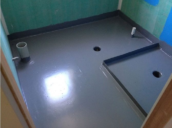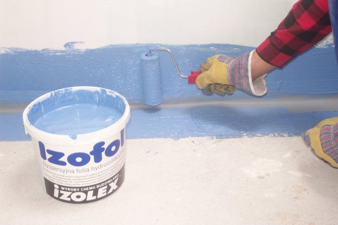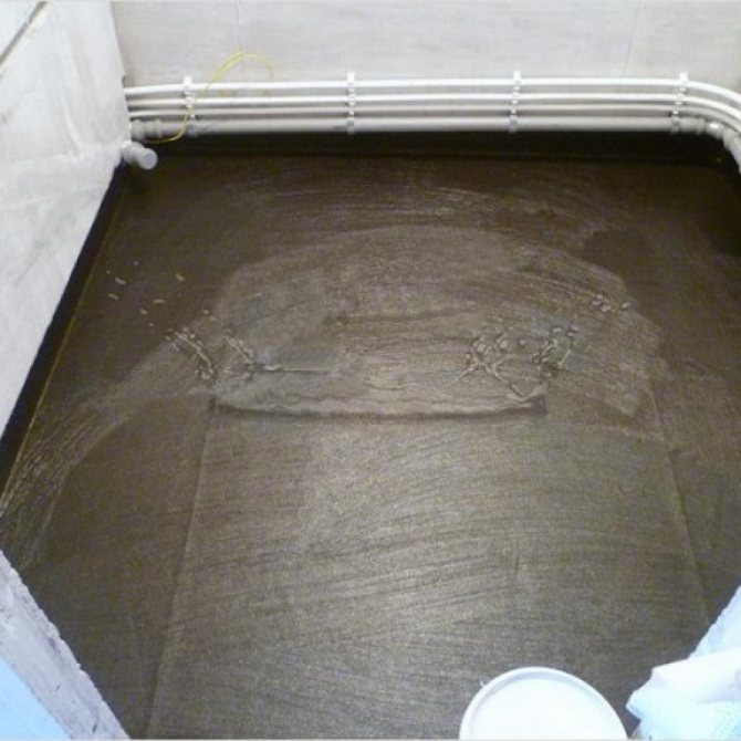 This is a solution based on bitumen, rubber or synthetic ingredients, which is applied directly to the floor, bathroom walls, before laying the tiles. It is used more often than other waterproofing methods.