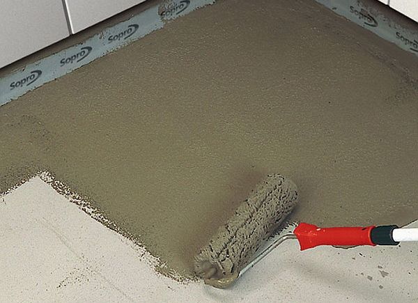Rolled materials, in contrast to coating materials, require a longer installation. A prerequisite is a flat floor surface and a screed. Before laying the tiles, an additional layer of a thin screed is applied to the roll waterproofing.