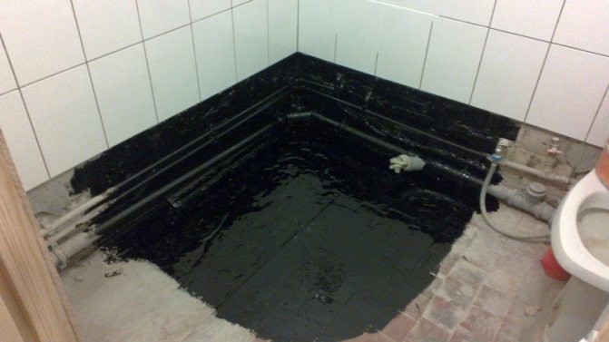 Mastic is a multifunctional synthetic material that is resistant to cracking and aging. For waterproofing the bathroom, bituminous and acrylic mastics (polymer) are used.