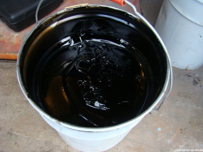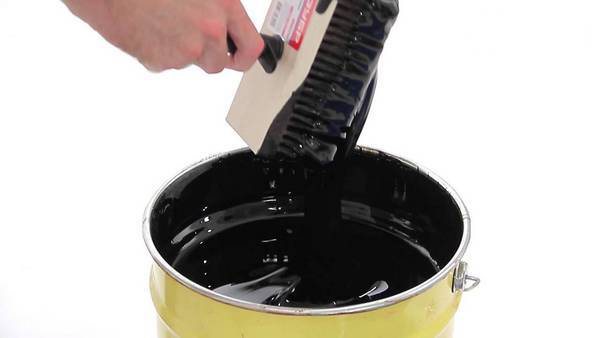 - Bituminous solutions. These are the cheapest materials, which ensures their stable popularity. They are applied hot or cold. In the first case, the mastic is heated to a temperature of no more than 180 ° C, and then applied to the surface of the structure. But it will be difficult to use such material in a residential apartment. Therefore, it will be more practical to use a bituminous solution, which can be worked with in a cold way. Its only drawback is not such good adhesion of the material, as with the heated mastic.