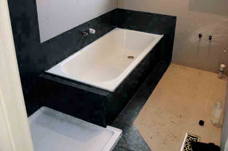 Before applying the waterproofing layer, level the surface of the walls and floor