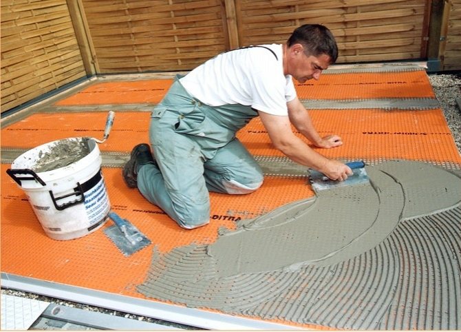 - then either a thin concrete screed is performed, or they immediately start laying the tiles.