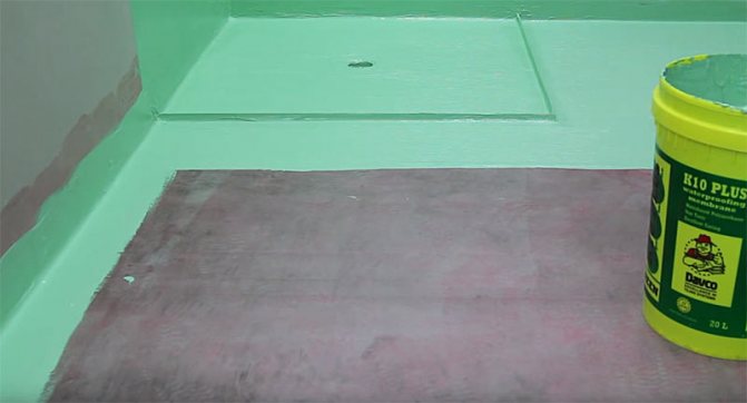 Lubricants (cement-polymer compounds, mastics) are used as an insulator. The waterproofing mixture is applied with a trowel, it forms an even surface and serves as an excellent base for tiles.