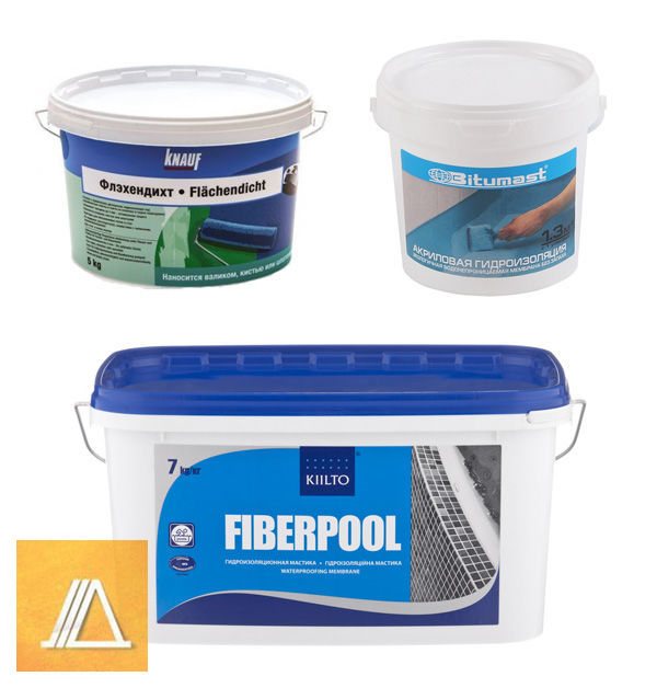 Popular and famous mastics: Fiberpool (Kiilto Fiberpool) the most popular in this category: Knauf Flahendicht, 5 kg and Bitumast rubber-bitumen mastic 3.8 l,.