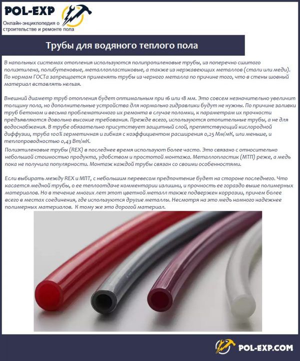 Metal pipes for warm water floors are produced in the following types: