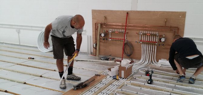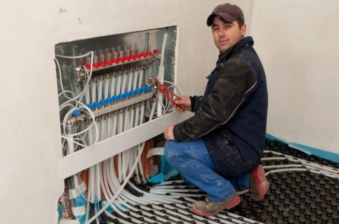 Even with self-installation of a warm water floor, there are works that are best entrusted to a narrow specialist. For example, the connection of the collector after the boiler pump and in front of other radiators should only be carried out by professionals. It is also better to entrust the installation of thermostats to a specialist.