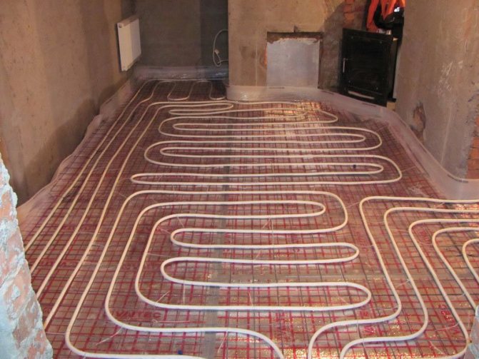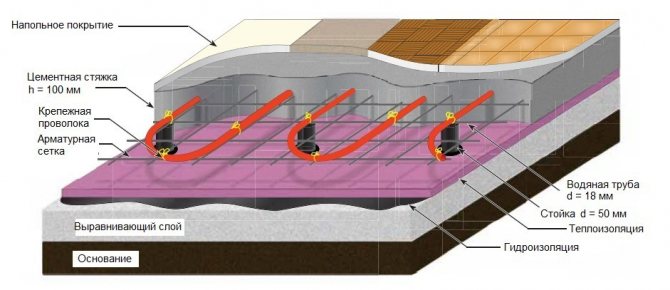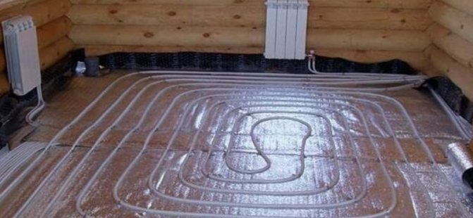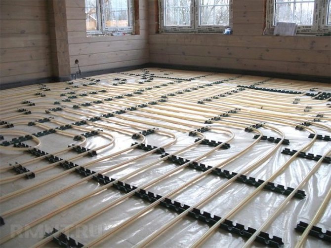 For water underfloor heating, you will need a flat surface of the rough base. It is recommended to perform a screed, self-leveling floor or use a self-leveling mixture. Plumbing is laid on a dry surface. It is recommended to use insulating materials so that all the heat from the water circuit is directed to the floor.
