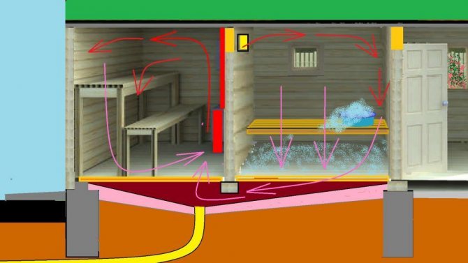 - The third drawback is the impossibility of vertical temperature zoning. If in an ordinary bath, if necessary, to cool down, it is enough to move lower (this rule is true, not only for a steam room), then in a room with a hypocaust you cannot count on this - the floor is hotter than at medium heights.