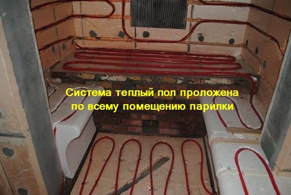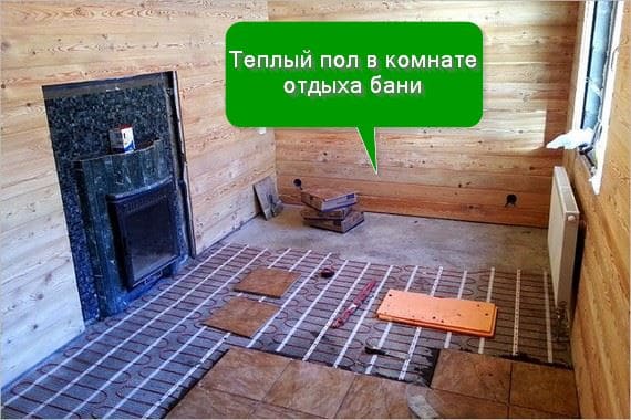 I would like to feel the warmth under my feet in the bath everywhere, including in the washing room and in the steam room - the solution would be a heated water floor in the bath. It is quite costly during installation and is practically not repaired - any repair, in fact, comes down to replacing the entire structure. But it has the lowest operating costs. And he is also not afraid of moisture, so he is good in a washing and steam room. So this is the most versatile option.