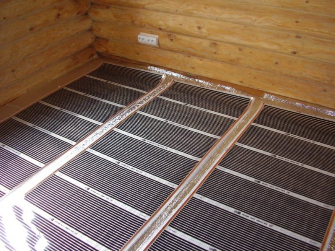 - After the standard preparation of the base, a roll of thermal film is rolled out on the floor. For reliability, it is fixed to the base with adhesive tape.