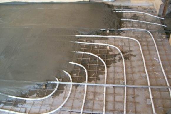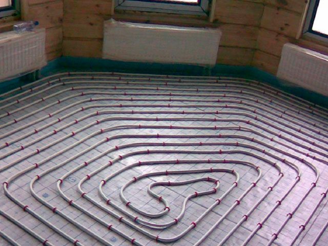 - water heat-insulated floor. The pipe contour is laid on the finished base, the manifold cabinet is installed, the outlet and supply pipes are drawn to the manifold, after which the system is poured with the ready-made mixture.