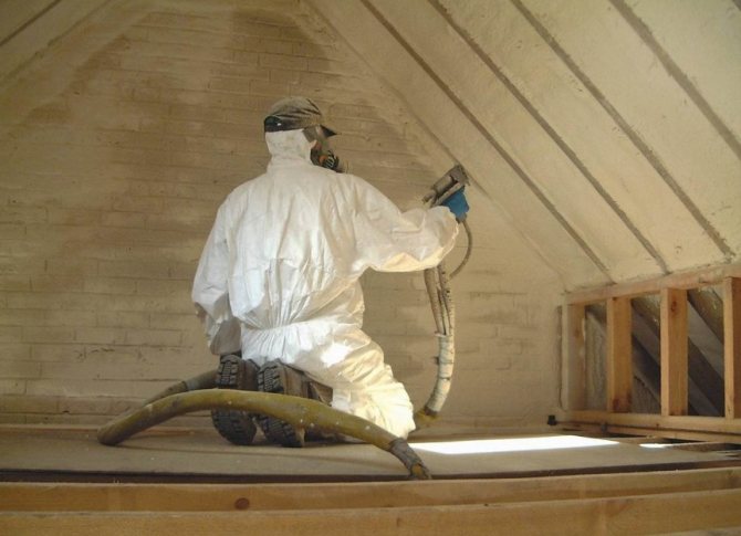 To carry out blowing using dry technology, the use of special equipment will be required. The material is fed through a hose to all planes and slots, completely filling them.