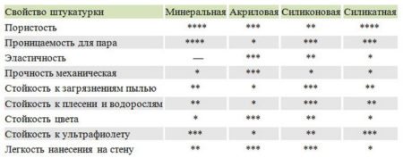In the table you can see the comparative characteristics of the main properties of plastering systems. If you decide to insulate your house with a vapor-proof heat insulator, then choose the appropriate finish. In the case of mineral wool, cement and silicate mortars are suitable for you. With the wrong selection, the facade finish may suffer and will not last long.