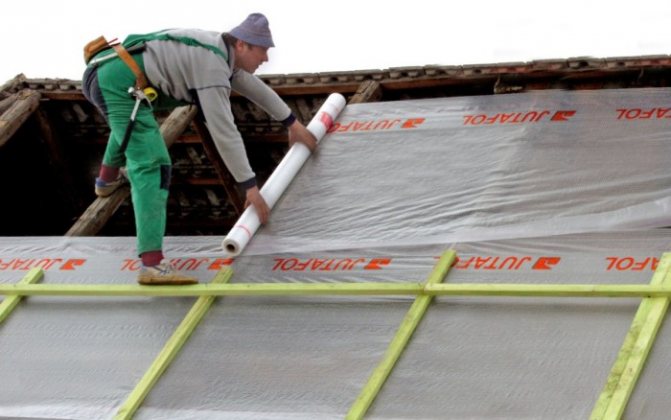 Previously, glassine or roofing material was used as waterproofing. Now, in order for the roof to last a long time, special membranes are used. Although this material is not cheap, it is reliable and durable. The membrane material consists of 2 layers: the first is reinforcing, the second is moisture-repelling.