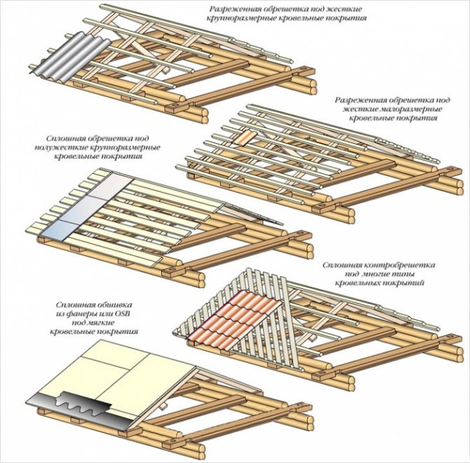 - Sheathing made of beams located at a distance of 35–45 cm from each other in a direction perpendicular to the rafters.