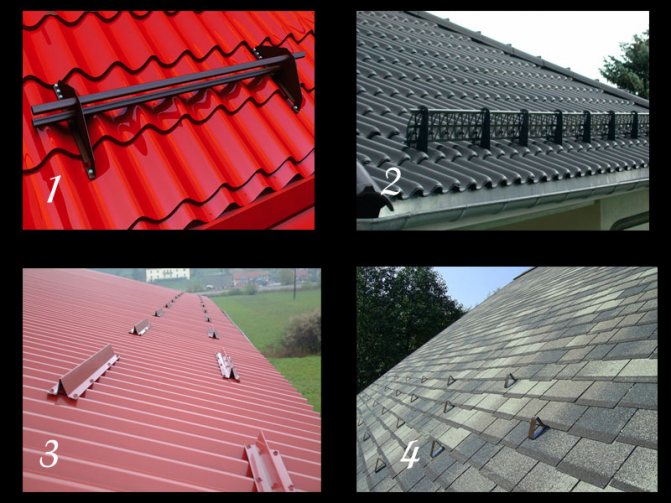 The most popular are tubular metal snow guards and are usually painted black, brown, green or red. They are mounted along the entire perimeter of the roof above the eaves. Also, they must be placed above the entrance, dormers and above each level of a multi-tiered roof.