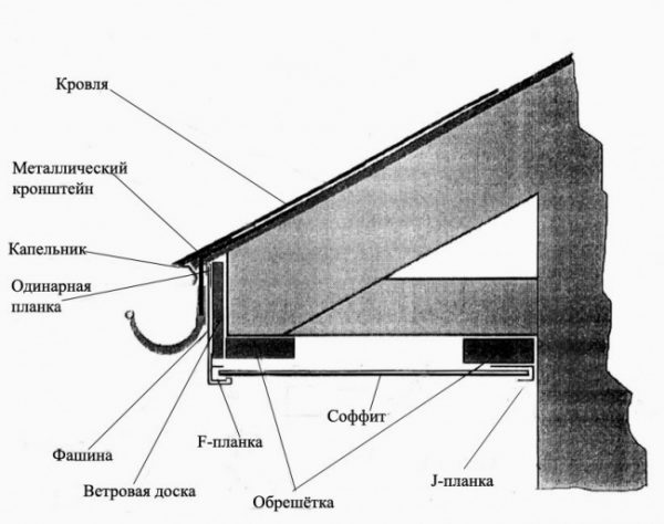 For the arrangement of eaves overhangs of metal roofing, manufacturers offer various decorative strips, soffits, panels, etc.