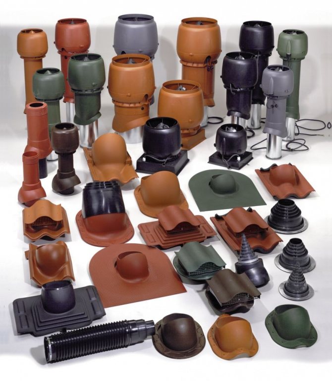 For the output through the roof of various utilities and ventilation (drainage) pipes, manufacturers produce several types of pass-through elements: