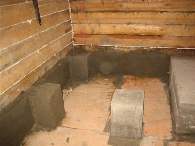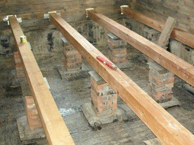 Step 2. The floors are laid on logs, logs - on beams. And here a lot of things depend on the conscientiousness of the builders. They had to lay the beams during the laying of the timber. Didn't you get it? The problem is, you need to make columns for them.