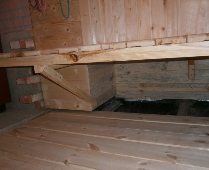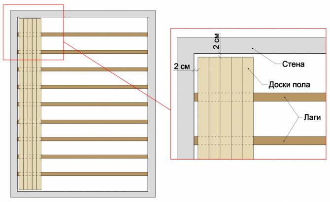 - Laying boards on logs is one of the acceptable options. The distance between the boards and the pillow should be at least 10 centimeters. It is important to remember that when moisture gets in, the boards will expand, and therefore the gap between them must be left at least one centimeter.