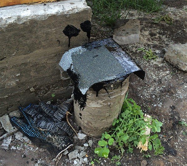 An example of waterproofing a support with roofing felt