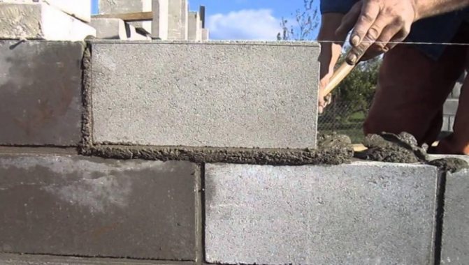 - Now you can start laying the material. The technology is practically no different from brick laying. You need blocks, mothers, mortar and thread with nails. It all starts with placing corner blocks. If the wall is more than 10 m, then the block is also placed in the middle. Your task is to perfectly align the expanded clay concrete blocks and pull a thread between them for orientation.The evenness of the entire structure will depend on this.