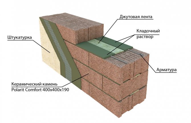 Advice! In order to prevent the formation of cold bridges through the seams, jute tape is used when laying the house. It fits in the middle of the masonry, not allowing the cold to pass through the solution.