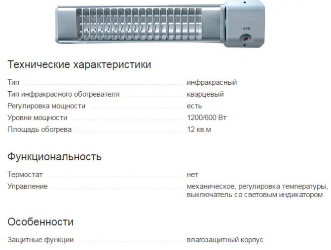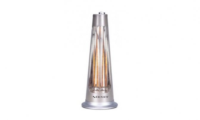 - Type of heating element (halogen lamps, ceramic, quartz, micathermic). The first type of lamps is impractical, as it emits short waves, unable to heat over a distance of more than 1 m. Ceramic lamps are short-lived. Quartz crystals have a red color, which is unpleasant for long viewing. The best option for an economical heater is a micathermic heating element, which has a long service life;