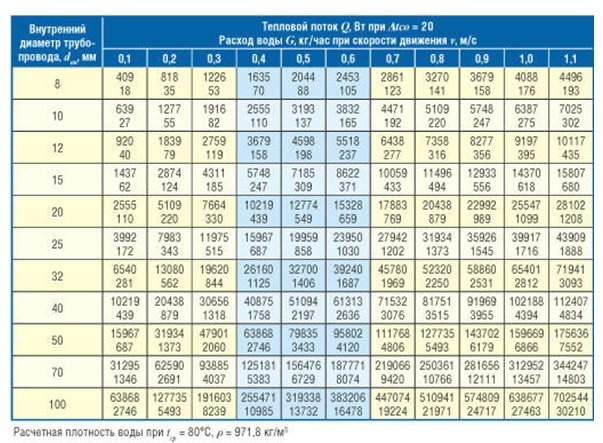 It is almost impossible to determine the diameter of the pipes on your own due to the complexity of the calculations, therefore, to determine the parameter, you can use the table below or the calculation method.