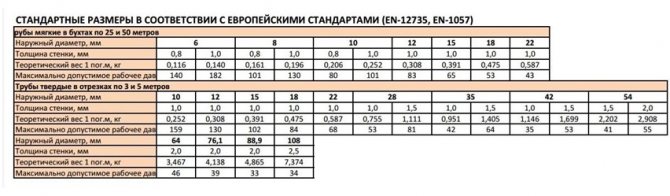 Of course, the indicated dimensions are characteristic only for domestic products, but the copper pipe KME (a well-known trademark from Germany) may have slightly different dimensions. Indeed, the European Union has its own quality standards.